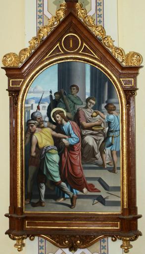 | Keywords: Simon Ogrin - Križev pot, 1. postaja (Hrovača).jpg Artwork creator Simon Ogrin 1912 oil canvas cm 84 53 Hrovača Church https //prezi com/gd-yfn-05joo/oljne-slike-iz-obdobja-od-1800-do-1914-v-cerkvah-ribniske-zu Non-free frame PD-old-auto 1930 1912 paintings in Slovenia Paintings by Simon Ogrin Stations of the Cross in Slovenia Station 1 Jesus is condemned to death 20th-century paintings of the Passion of Christ 20th-century religious paintings in Slovenia 20th-century oil on canvas paintings in Slovenia Hrovača |