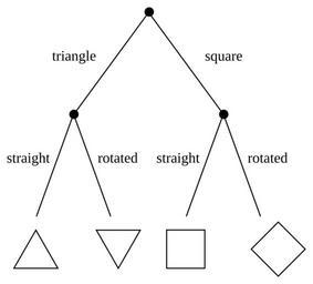 | Keywords: Simple decision tree.svg Inkscape en A decision tree for four shapes Based on a figure from cite journal The physics of forgetting Landauer ™s erasure principle and information theory M B Plenio V Vitelli Contemporary Physics 2001 42 1 26 the caption of which says An example of a decision tree Two binary choices have to be made to identify the shape triangle or square and the orientation horizontal or rotated In sending with equal probability one of the four objects one therefore transmits 2 bits of information 2013-04-02 own Eviatar Bach cc-zero Uploaded with UploadWizard Binary decision diagrams Files by User InverseHypercube Information theory |