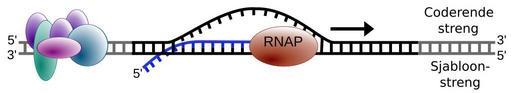 Keywords: Simple transcription elongation1 NL.svg nl Transcriptie van DNA naar mRNA met behulp van DNA-polymerase own Forluvoft<br>translated Woudloper 2007-10-09 File Simple transcription elongation1 svg Transcription genetics