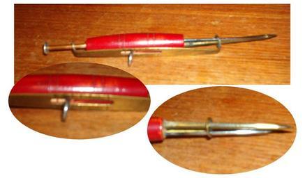 | Keywords: Simple tufting machine.jpg En dims som lå i min farmors syskrin Jeg ved ikke hvad den bruges til Den eneste bevægelige del er gulmetalbøjlen som kan skydes frem og tilbage Jeg gætter på at man ved hjælp af stregerne som ses i den venstre detalje sætter den i en bestemt position Der er to nåle hvor den korte er syleformet mens den lange har ét nåleøje ved spidsen og ét ved roden Den lange nål er i øvrigt hul --Palnatoke 1 mar 2006 kl 14 30 CET A gizmo that was in my grandmother's sewing box I know not what it used to The only moving part is gulmetalbøjlen that slides back and forth I guess that by using the lines as seen in the left detail put it in a certain position There are two needles where the short is syleformet while long has one eye of the needle at the tip and one at the root The long needle is also hollow --Palnatoke 1 mar 2006 kl 14 30 CET translated from Danish by Google Translate This is a hand tufter The long needle guides the yarn and the short movable needle holds the yarn during the building of the tuft When the needle goes back the yarn is released so the yarn stays in place and the needle retuns to the starting position own 2006-02-28 Palnatoke at http //da wikipedia org da wikipedia Released into the public domain by the author da wikipedia Palnatoke userpageimage original upload log page da wikipedia Dims jpg 2006-02-28 14 12 Palnatoke 1654×969× 144248 bytes <nowiki>En dims som lå i min farmors syskrin</nowiki> Tufting machines Textile tools |
