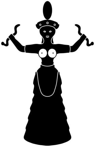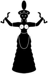 | Keywords: Simplified-stylized Minoan snake goddess symbol.svg A somewhat abstract black-and-white only simplified/stylized representation of the ancient Minoan snake goddess statuette used as a symbol in the Goddess movement of modern times Portions of photographs such as File Snake Goddess Crete 1600BC jpg or File Snake Goddess - Heraklion Achaeological Museum retouched jpg were traced to vector outlines and the vector outlines were greatly simplified and symmetrized for the SVG This image is about the modern symbol of feminist spirituality and/or goddess-worship and/or matriarchy more than about the exact details of the archaeological statuette 2011 AnonMoos SVG For another modern Goddess symbol based on an ancient figurine see File Spiral Goddess symbol neo-pagan svg For another Minoan-based symbol of women's power see File Labrys-symbol svg Goddess movement - Thealogy symbols Snake Goddess Female human breasts in art |