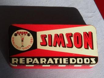 Keywords: Simson reparatiedoos pic2.JPG Simson reparatiedoos own 2012-08-19 09 51 06 AlfvanBeem CC-zero Trademarked Tire Repair tins Nostalgia by Alf van Beem Classic vehicle photographs by Alf van Beem