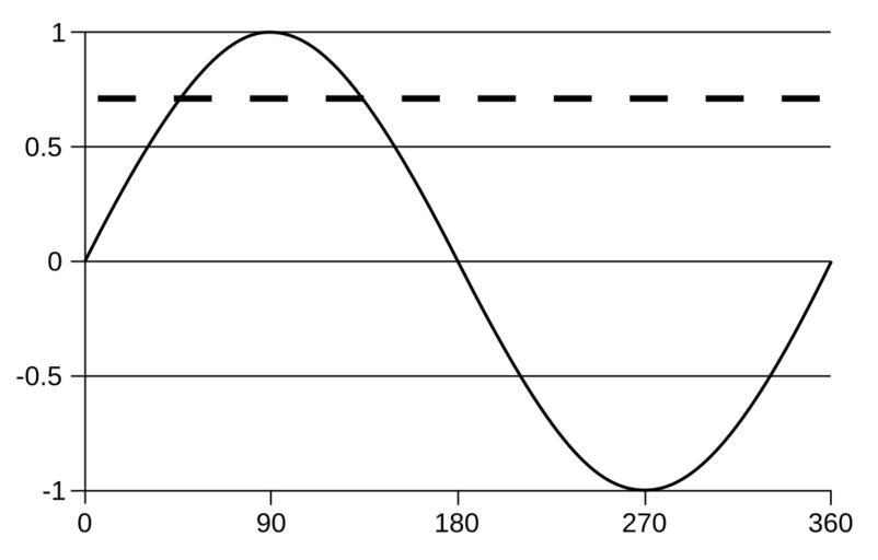 | Keywords: Sine wave 2.svg Image Sine wave png Sine wave with effective value HI The solid line represents the sine function with the ordinate labelled in degrees 360 degrees 2 pi radians one cycle The effective value of the waveform is the root-mean-square value and can be thought of the constant voltage that would transmit power at the same rate as the alternating current This is 0 707 of the peak value square root of 1/2 en wikipedia 2006-05-19 Booyabazooka wikipedia en w en Booyabazooka Original upload log page en wikipedia Sine_wave svg 2006-05-19 21 25 Booyabazooka 520×332× 9551 bytes <nowiki>SVG conversion of Image Sine wave png Sine wave with effective value The solid line represents the sine function with the ordinate labelled in degrees 360 degrees 2 pi radians one cycle The effective value of the waveform is the root-mean</nowiki> Curves AC waves |