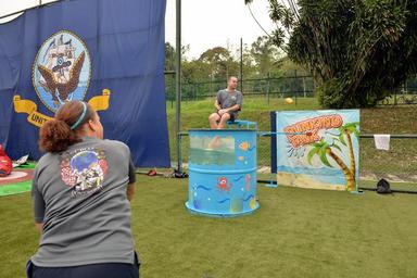 | Keywords: Singapore Area Coordinator's Family Fun Day fosters community-wide camaraderie 160209-N-QL164-007.jpg en SINGAPORE Feb 9 2016 - RP1 Laneisha Tilton attempts to dunk Chaplain Charles Ferguson during the 2nd Annual Singapore Area Coordinator Fun Day held Feb 9 2016 The community-wide event was sponsored by the First Class Petty Officer Association Chief Petty Officer Association Junior Enlisted Association and Morale Welfare and Recreation The daylong event gathered more than 300 military service members DoD civilians and families Featured events included a tug-of-war contest a Sumo wrestling game a pugil sticks warrior game a Corn-Hole bean bag game a water dunk tank and a king-size air jumper Participants also played a few rounds of volleyball and kickball Official U S Navy photo by Marc Ayalin <br>Unit Navy Region Center Singapore 2016-02-09 Marc Ayalin https //www dvidshub net/image/2396856/singapore-area-coordinators-family-fun-day-fosters-community-wide-camaraderie 160209-N-QL164-007 2016-02-11 01 33 SG PD-USGov-Military-Navy Pugil sticks Images from DoD uploaded by Fæ |