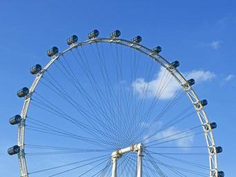 Keywords: singapore flyer ferris wheel big wheel river skyline blue sky clouds circle