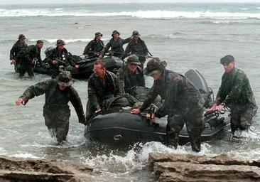 | Keywords: 000509-N-9885M-009 EOD Training.jpg en 000509-N-9885M-009 SANTA RITA Guam May 9 2000 -- Members of Explosive Ordnance Disposal Mobile Unit Five EODMU-5 and the Singapore Navy come ashore ahead of large swells to land safely during Tri-Crab 2000 Tri-Crab is a multi-national joint service EOD training exercise which includes members of the United States Navy and Air Force EOD teams the Australian Navy and Air Force and the Singapore Navy U S Navy photo by Photographer's 2nd Class Alan D Monyelle RELEASED 2000-05-09 000509-N-9885M-009 Navy http //www navy mil/view_image asp id 382 U S Navy photo by Photographer's 2nd Class Alan D Monyelle PD-USGov-Military-Navy Men at work in the United States Naval Base Guam Tri-Crab 2000 Photographs taken on 2000-05-09 Battle Dress Uniform in 2000 Military people in 2000 Boonie hats May 2000 in the United States People of the United States in 2000 Military people on duty Explosive Ordnance Disposal Mobile Unit 5 Republic of Singapore Navy |