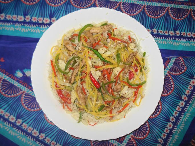| Keywords: Singaporean rice - 20120826-01.jpg A dish called Singaporean rice which consists of rice and noodles cooked with sliced meat and vegetables and garnished with chillies It appears to be more common in Pakistan than in Singapore itself Own Miansari66 2012-08-26 16 19 Other versions 100x100px Singaporean rice - 20120826-02 jpg Cc-zero Foreign cuisines in Pakistan Rice dishes of Singapore | ||||
