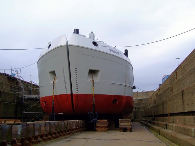 Keywords: Sinjoor I p2.JPG Sinjoor I in the dry-dock at Antwerp harbour Front view own 2007-02-17 10 17 47 AlfvanBeem CC-zero Ships photographed by Alf van Beem Ships in drydocks Sinjoor I ship 1982