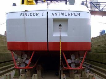 Keywords: Sinjoor I p5.JPG Sinjoor I in the dry-dock at Antwerp harbour Rear view own 2007-02-17 10 19 11 AlfvanBeem CC-zero Ships photographed by Alf van Beem Sinjoor I ship 1982 Ships in drydocks Stern views of watercraft
