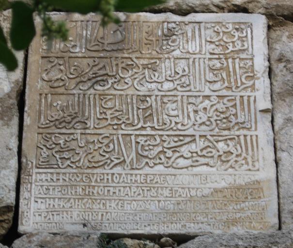 | Keywords: Sinop bilingual inscription of Kaykaus I.jpg Sinop bilingual inscription of Kaykaus I Own 2007-07-02 Aramgar History of Sinop 1220 works Sultanate of Rûm Greek inscriptions in Turkey Arabic inscriptions in Turkey Archaeological multilingual inscriptions Bilingual media |
