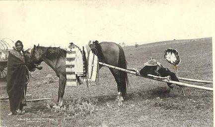 | Keywords: Sioux Indian travois, ca 1893 (LAROCHE 138).jpeg Photograph Creator Frank La Roche Caption on image Sioux Indian travois Subjects LCTGM Travois Subjects LCSH Dakota Indians--United States; Indians of North America; Indian women--United States ca 1893 Institution University of Washington UWASH-LAROCHE-source accession number laroche 138 PD-old-auto-1923 1936 Information field Order Number LAR252 Sioux Travois Females with horses Horses of Native Americans Native American feather art United States in the 1890s Unidentified locations in the United States Black and white photographs |