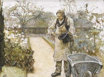 | Keywords: Sir Hubert von Herkomer - The old gardener.jpg Artwork Creator Hubert von Herkomer pencil bodycolor gum arabic with scratching out in 6 8 object history C E Fry The Little Elms Watford about 18 2 ; with Spink-Leger London signed with initials 'HH' lower left signed again and inscribed 'No 2 'The old Gardener'/Hubert Herkomer/32 Smith St Kings Rd/Chelsea SW' and with a further inscription 'Foster Gardener II/C E Fry/The Little Elms/Watford about 18 2/Hants' on the artist's label attached to the backboard Christie's online 4009685 6643 89 London 21 November 2002 Other versions PD-old-auto-1923 1914 DEFAULTSORT Hubert von Herkomer - The old gardener Paintings by Hubert von Herkomer Paintings of men standing outdoors Paintings of gardens |