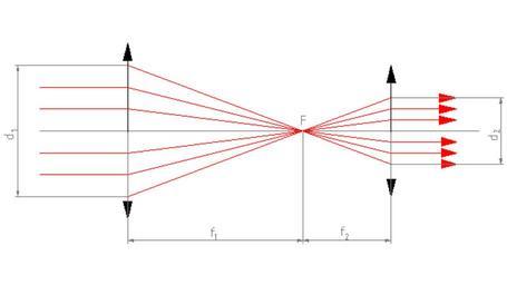 Keywords: Sistema afocale 1.png Schema di un concentratore di fascio costituito da un sistema afocale di due lenti Own 2007-08-31 Fornaeffe Focal length diagrams of positive lenses