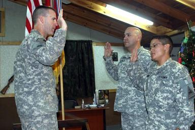 | Keywords: Sister, brother reenlist at Camp Striker DVIDS134952.jpg en Siblings Pfc Marlene Banuelos and Staff Sgt Normando Gallardo both of whom are natives of El Paso Texas raise their right hands as each swears to serve for another six years in the U S Army Banuelos serves with Headquarters Headquarters Company 2nd Brigade Combat Team 1st Armored Division Multi-National Division “ Baghdad and Gallardo serves with Company A 40th Electronic Signal Brigade in Balad Administering the oath is Col Pat White a native of Apple Valley Calif who is the commander of the 2nd BCT 1st Armd Div 2008-12-10 Staff Sgt Scott Wolfe https //www dvidshub net/image/134952 134952 2008-12-10 09 45 BAGHDAD IQ PD-USGov 1st Armored Division United States People of El Paso Texas Camp Striker Images from DoD uploaded by Fæ |