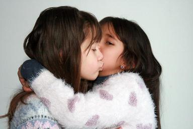 Keywords: sisters love hug smile innocence beauty