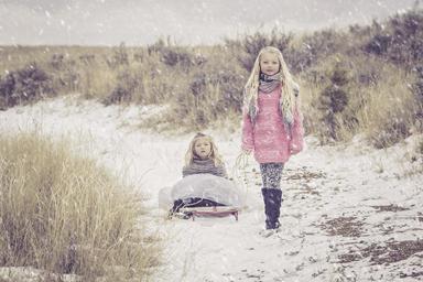 Keywords: sisters snow girl child cold childhood siblings sledding winter fun outdoor