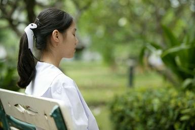 Keywords: sitting woman girl asian bench park thailand asia relax calm peaceful relaxed