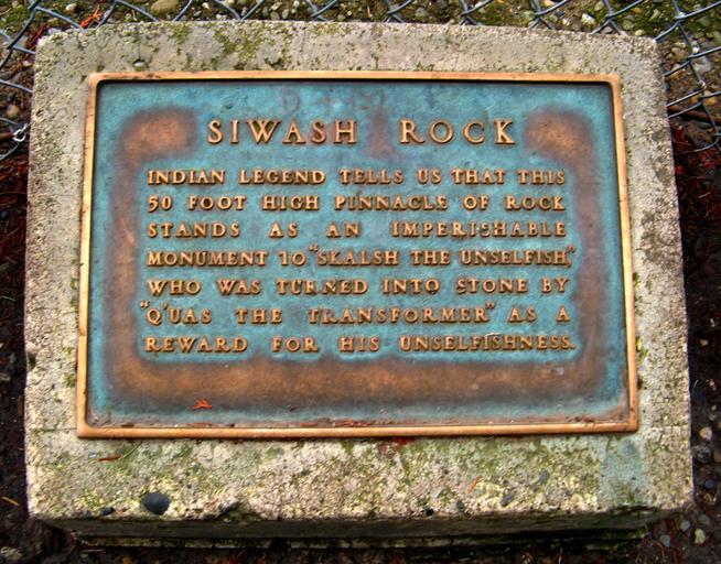 Keywords: SiwashPlaque.jpg Siwash Rock Plaque Stanley Park Vancouver Canada own 2006-12-08 Bobanny Siwash Rock Native American culture