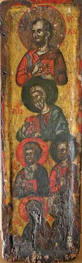 | Keywords: Six apostles, ca. 1480, Struga.jpg en Six apostles ca 1480 in St George church in Struga Macedonia http //www kalamus com mk/pdf_spisanija/patrimonium_3/021 20- 2025 20Spisanie 202010 20VIKI 2005 20ok pdf Ох идско-ст ушки иконописни т аги од вто ата половина на 15 век author 1480 PD-Macedonia Icons in St George's Church Struga Icons of apostles |