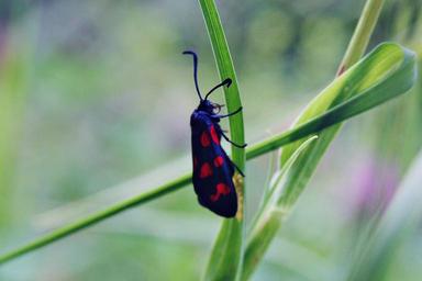 Keywords: six stain burnet black red coat costume nature grass blade of grass meadow wayside edge of the woods probe butterfly