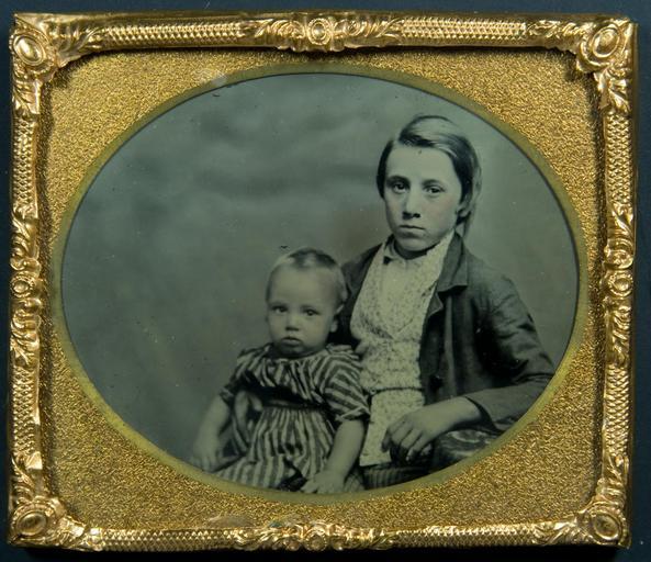 Keywords: ambrotype ruby ambrotype rubyambrotype ruby glass collodion sixth-plate sixthplate omeka public domain publicdomain groupshot people photo border round outdoor This is the first example of a ruby ambrotype in my collection, a generous gift from an American friend who stayed for a night after we had both attended a course in early processes at Lacock Abbey. I'll use the comments below to show images and describe the characteristics of a ruby ambrotype, but in essence it's a traditional wet plate collodion positive (as devised by Frederick Scott Archer) but instead of being made on clear glass and then having a coat of black lacquer applied, it is on a very dark ruby coloured glass. Unknown provenance, unknown date (estimated late 1850s). What strikes me is the unusual yet very pleasing way that the photographer has dealt with the posing of the children (photographers always hate even numbers!). This is the first example of a ruby ambrotype in my collection, a generous gift from an American friend who stayed for a night after we had both attended a course in early processes at Lacock Abbey. I'll use the comments below to show images and describe the characteristics of a ruby ambrotype, but in essence it's a traditional wet plate collodion positive (as devised by Frederick Scott Archer) but instead of being made on clear glass and then having a coat of black lacquer applied, it is on a very dark ruby coloured glass. Unknown provenance, unknown date (estimated late 1850s). What strikes me is the unusual yet very pleasing way that the photographer has dealt with the posing of the children (photographers always hate even numbers!). |