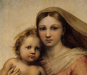 Keywords: Sixtinische Madonna - Madonna und Kind 1.jpg Madonna und Kind Ausschnitt aus Raffaels Sixtinischer Madonna Raphael - The Sistine Madonna - Google Art Project jpg 1512 - 1513 Creator Raffaello Sanzio PD-100 Details of Sistine Madonna