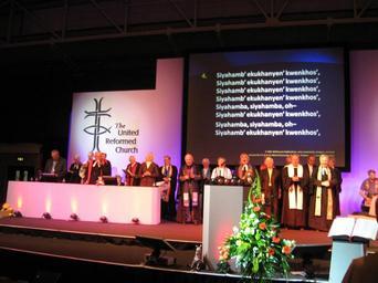 | Keywords: Siyahamba United Reformed Church General Assembly 2007.jpg Singing Siyahamba with the former moderators at the United Reformed Church General Assembly 2007 Manchester Own 2007-07-07 Kaihsu Tai Christianity in the United Kingdom United Reformed Church |