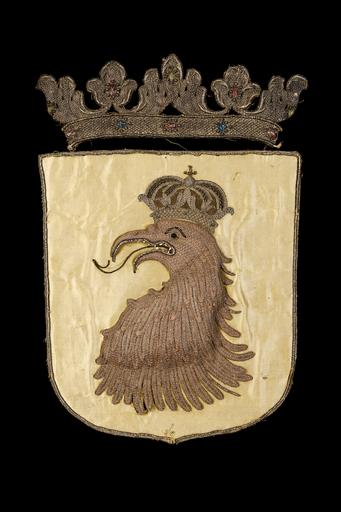 | Keywords: Skånes landskapsvapen med griphuvud, 1660 - Livrustkammaren - 108732.tif LSH artwork Nils Niklas Stare brodör sv Vapensköld av gul sidenatlas kantad av en bård bestående av en snodd av silverlan och silvertråd virade runtom en silkeskärna samt av en tvinnad silvertråd och ytterst av ett smalt vävt band av vit silkestråd och silvertråd utdragen i små öglor <br/>Mitt på skölden ett applikationsbroderi i hög relief föreställande ett griphuvud krönt av en sluten krona broderad direkt på taften Griphuvudet är huvudsakligen broderat i läggsöm med silvertråd röd blekt silkestråd och veckade silverlan På halsen har fjädrarna markerats av flikar kantade med smala snören av silvertråd och brun silkestråd <br/>Gripen har ett öppet gap kantat av en snodd av silverlan silvertråd och brun silkestråd runtom en silkeskärna samt av ett smalt snöre av silvertråd och brun silkestråd På insidan av gapet är broderat med blekt röd silkestråd Gripen har 14 vassa tänder av ben samt en utsträckt tunga av svart snodd av svart silkestråd och silvertråd runtom en silkeskärna Ögat är av svart silkestråd samt av en svart glaspärla markerat av två rader av kantilj av silvertråd och med ett ögonbryn av svart silkestråd och silvertråd <br/>Gripen kröns av en sluten krona med fem stiliserade byglar Kronan är broderad med silvertråd och silverlan med byglarna kantade av små prickar av kantiljer av silvertråd samt med tre små prickar av kantiljer av silvertråd på kronringen Kronan kröns av ett kors av kantiljer av silvertråd stående på en glob av silvertråd Mellan byglarna är som täckande bakgrund broderat med stygn av svart silkestråd <br/>Skölden kröns av en öppen krona påsydd i två hörn Kronan av silvertråd med spår av förgyllning Den har en 30 mm bred kronring kantad av snodd av silvertråd och silverlan virade runtom silkeskärna samt av ett smalt vävt band av vit silkestråd och silvertråd utdragen i små öglor Kronringen är broderad i plattsöm av silvertråd med spår av förgyllning i ett schackliknande mönster kallat gaufrure På kronringen är broderat fem stenimiterande ovaler omvirade av röd respektive blå silkestråd Runtom dessa sitter små prickar av kantiljer av silvertråd Kronan har fem spetsar föreställande stiliserade blommor och blad De är likaså broderade i plattsöm av silvertråd med spår av förgyllning kantade av tvinnad silvertråd och med konturer av en smal snodd av silvertråd runtom silkeskärna På vardera blomma och blad sitter omväxlande stående och liggande stenimiterande ovaler av silverlan omvirade av röd respektive grön silkestråd <br/>Vapnet är fodrat med pålimmad beigefärgad linnelärft <br/>Mitt på baksidan av skölden står en påskrift med svart bläck i sned linje Skåne//N S original caption Skånes landskapsvapen med griphuvud 1660 <br/> Nyckelord Föremålsbild Kronor 1660-tal Skåne Landskapsvapen Grip Karl X Gustavs död och begravning 1660 silk Färg gul material sidenatlas - glass pearl Färg svart dekor material glaspärla - linen Färg beige foder material linnelärft - silver Färg silver guld dekor material silvertråd - silk Färg svart brun röd vit dekor material silkestråd - silver Färg silver dekor material silverlan size mm 390 krona g 400 size mm 362 sköld size mm 124 krona size mm 420 sköld LRK place of origin original filename lm_dig13342 61429 inventory number LRK 24858 108732 CC-BY-SA Jens Mohr Griffins in heraldry Coats of arms of counties of Sweden Crowns in heraldry 1660s Funeral of Charles X Gustav of Sweden Coats of arms to be classified Jens Mohr Media contributed by LSH dim-with multiple size templates Media contributed by LSH unmatched creator Media contributed by LSH unmatched keyword Media contributed by LSH 2016-05 |