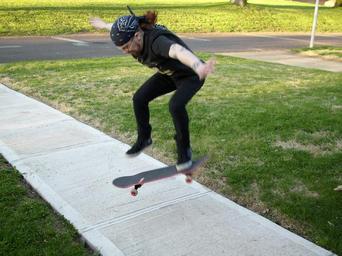 Keywords: skateboarding skateboarder sidewalk jump male trick skate trick skateboard stunt suburb st louis
