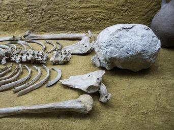 Keywords: skeleton bones femur museum bury dead skull death plague tomb fourth millennium