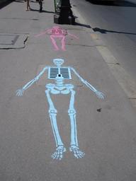 | Keywords: skeleton sewer chalk art street art asphalt creativity draw street fun colorful picture outdoor pavement sidewalk walk walkway path urban ground pathway surface professional pedestrian chalk art artist bones blue pink design pattern death symbol skull halloween dead cartoon decoration human humorous |