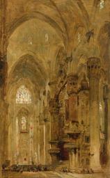 | Keywords: 'Sketch of the Interior of the Duomo, Milan' by David Roberts.jpg en Sketch of the Interior of the Duomo Milan by David Roberts oil on paper laid down on canvas 53 4 by 33 7 cm Sotheby's Creator David Roberts Paintings by David Roberts Duomo Milan in art - interior PD-old-100 Images from Sotheby's |