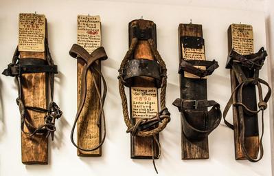 Keywords: ski binding old at that time equipment material wood winter