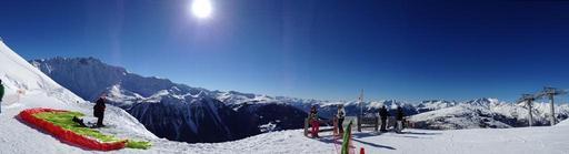 Keywords: ski mountain snow panoramic view paragliding landscape sun alps the arcs track france winter sky summit