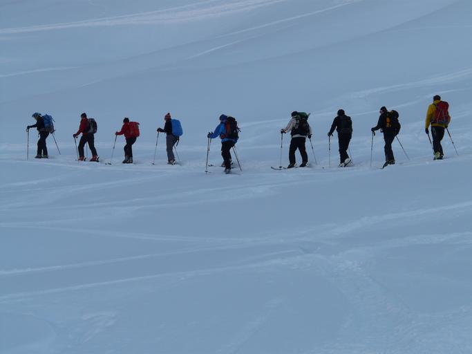 Keywords: ski tour winter hike hike winter cold run rise mountains skiing tourers endurance sports wintry group human people