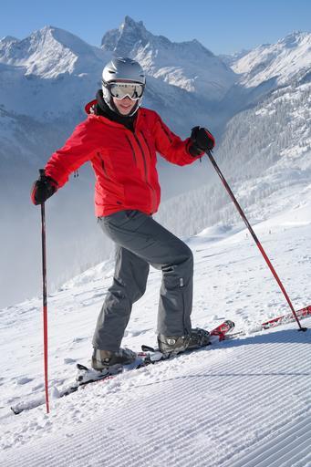 Keywords: skier skiing ski run ski snow cold fun runway skiers winter sports sport winter woman white sporty alpine ski helmet ski suit red posing attractive sexy female