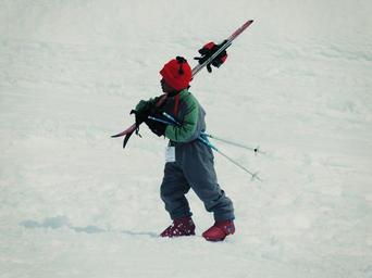 Keywords: skiing child kid snow winter ski mountain cold beautiful skier sport grunge carrying walking ski boots
