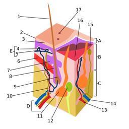 | Keywords: Skin.svg ar الجلد البشري translated by Tarawneh http //training seer cancer gov/ss_module14_melanoma/images/illu_skin01 jpg as last archived 2008-06-12 09 37 35 at http //web archive org/web/20080612093735/http //training seer cancer gov/ss_module14_melanoma/images/illu_skin01 jpg as displayed by http //training seer cancer gov/ss_module14_melanoma/unit02_sec01_anatomy html Anatomy of the Skin as last archived 2008-06-12 09 37 35 at http //web archive org/web/20080612093735/http //training seer cancer gov/ss_module14_melanoma/unit02_sec01_anatomy html Anatomy of the Skin US-Gov 2005-2009http //web archive org/ /http //training seer cancer gov/ss_module14_melanoma/unit02_sec01_anatomy html File Skin-ar png Arabic language File Skin jpg English language PD-USGov ImageNote 1 379 317 16 12 396 407 2 Vein ImageNoteEnd 1 ImageNote 2 319 30 16 12 396 407 2 15 is actually the Dermal Papillary 16 is the Sweat Pore and 17 which should be the Sensory Nerve ending is not shown ImageNoteEnd 2 SVG files on integumentary system Histological schematic SVG anatomy |
