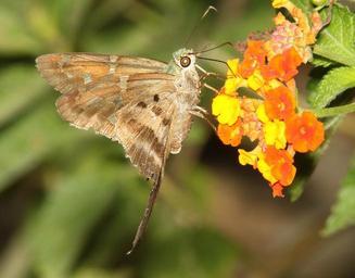 Keywords: SKIPPER, LONG-TAILED (Urbanus proteus) (4-18-12) national butterfly center, mission, tx (1) ALAN SCHMIERER ALAN SCHMIERER