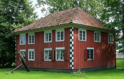 Keywords: Skipper Lunds hus Porsgrunn.jpg Skipper Lunds hus Porsgrunn I dag på Porsgrunn bymuseum Own 2007-08-02 Mahlum Porsgrunn bymuseum Houses in Telemark Red houses in Norway Anchors in Norway