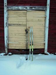 Keywords: skis sticks skiing ski skier snow winter nature snowy landscape exercise outdoors cold winter landscape finnish frost