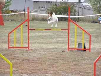 Keywords: Skocka kovova 4.jpg Jump photo by Martina Vakoničová 2005 2006-01-18 own assumed Prskavka~commonswiki Dog agility jumps
