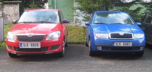 | Keywords: Škoda FabiaII+FabiaI.jpg en Comparison of two generations of czech car Škoda Fabia cs Porovnání dvou generací vozu Škoda Fabia own Jiří Erben 2010-11-11 Škoda Fabia I Front views of Škoda automobiles Skoda Red vehicles Skoda Blue automobiles Skoda Škoda Fabia II |