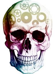 Keywords: skull cogs thinking human brain bone clever intelligent thinker skeleton man woman teacher teach school college university academic study think