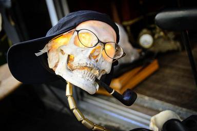 Keywords: skull and crossbones flea market paris marché aux puces pipe