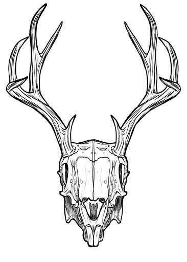 Keywords: skull horns antlers rabbit jackalope fantasy creature line-art drawing horned bone