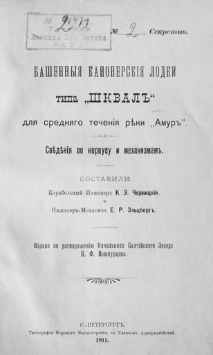 Keywords: Skval1911 0 titul1.jpg ru Титульный лист книги Башенная каноне ская лодка типа Шквал Скани ованная книга Че ницкий К Э Эльцбе г Е Р 1911 PD-old Башенная каноне ская лодка типа Шквал