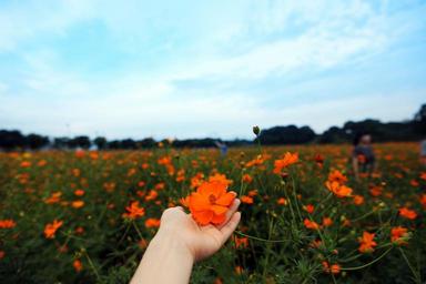 Keywords: sky cheomseongdae cosmos hand nature autumn summer flowers orange