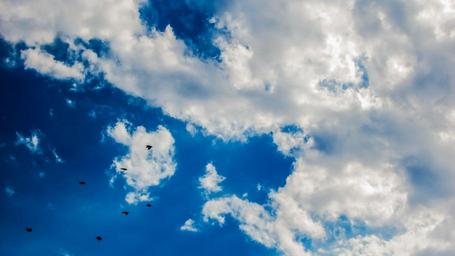 Keywords: sky clouds birds flock blue sky clouds autumn season nature