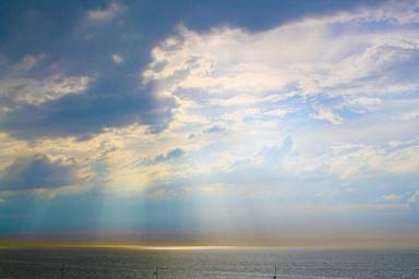 Keywords: sky clouds cloudscape sun rays sea water ocean summer morning